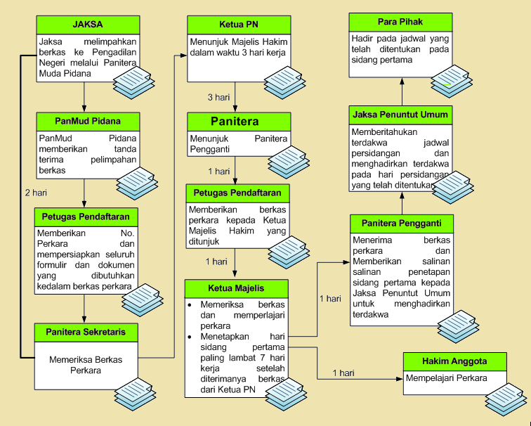Sumber: Pedoman Teknis Administrasi dan Teknis Peradilan Pidana Umum dan Pidana Khusus, Buku II, Edisi 2007, Mahkamah Agung RI, Jakarta, 2008, hlm. 1-2.
